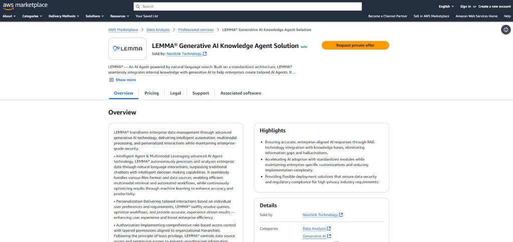 The successful launch of LEMMA® Generative AI Agent Engine on AWS Marketplace not only represents international recognition of Nextlink’s technological competitiveness in the global cloud market, but also sets a significant benchmark for Nextlink’s innovation capabilities in the generative AI field.