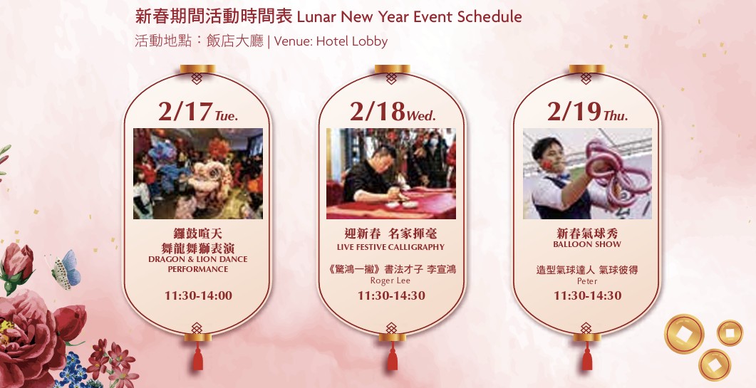Welcoming the New Year with festive celebrations, Shangri-La Taipei will host a series of Lunar New Year activities from February 17th to 19th. Activities include traditional festive experiences such as drum performances, meeting the Fortune God, handwritten red envelope and spring couplet creation, balloon show. We warmly invite you to come and experience the festive atmosphere, and enjoy this wonderful holiday season! (Photo: Shangri-La Taipei Website)