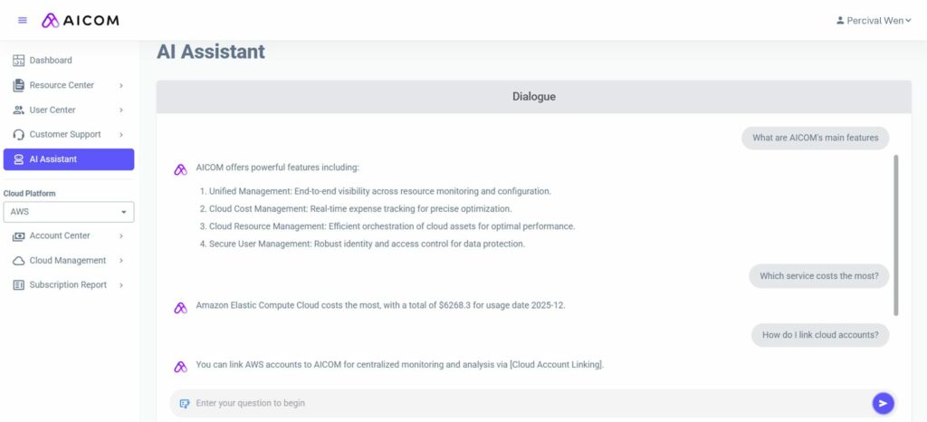 Taiwan’s leading multi-cloud solution provider, Nextlink Technology (TPEX: 6997), today announced the 2026 product roadmap for its AICOM® Cloud Intelligence Management Platform and officially launched its new Generative AI feature- AI Assistant. This milestone underscores Nextlink’s strong and growing capabilities in developing proprietary cloud products, reaffirming its leadership in the rapidly expanding cloud governance market. With global enterprises advancing into mature cloud adoption, demand for integrated multi-cloud governance continues to grow, Nextlink is deepening the value of AICOM® through AI-driven and multi-cloud–native enhancements—helping businesses achieve precise management, cost and resource optimization, and a fully intelligent cloud governance experience.