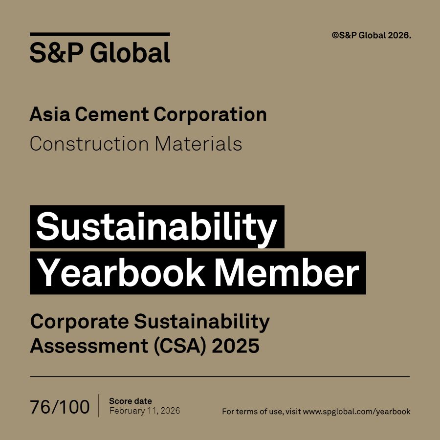 S&P Global recently announced the selection list for The Sustainability Yearbook 2026. Out of more than 9,200 companies evaluated worldwide, Asia Cement Corporation (ACC) has been selected for the third consecutive year. Notably, ACC stands as the only company from Taiwan’s building materials industry to be included in this year’s yearbook. (Photo Credit: S&P Global)