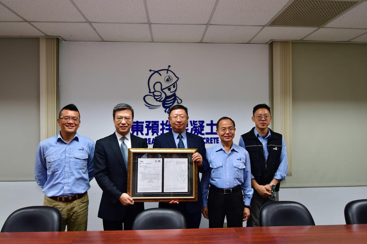 亞東預拌通過英國標準協會(British Standards Institution,簡稱BSI)的第三方查證,日前舉辦授證儀式,共取得ISO 14064組織型溫室氣體、ISO 14067碳足跡、14046水足跡三項證書,由BSI東北亞區總經理蒲樹盛頒發證書,亞東預拌總經理金崇仁代表接受。