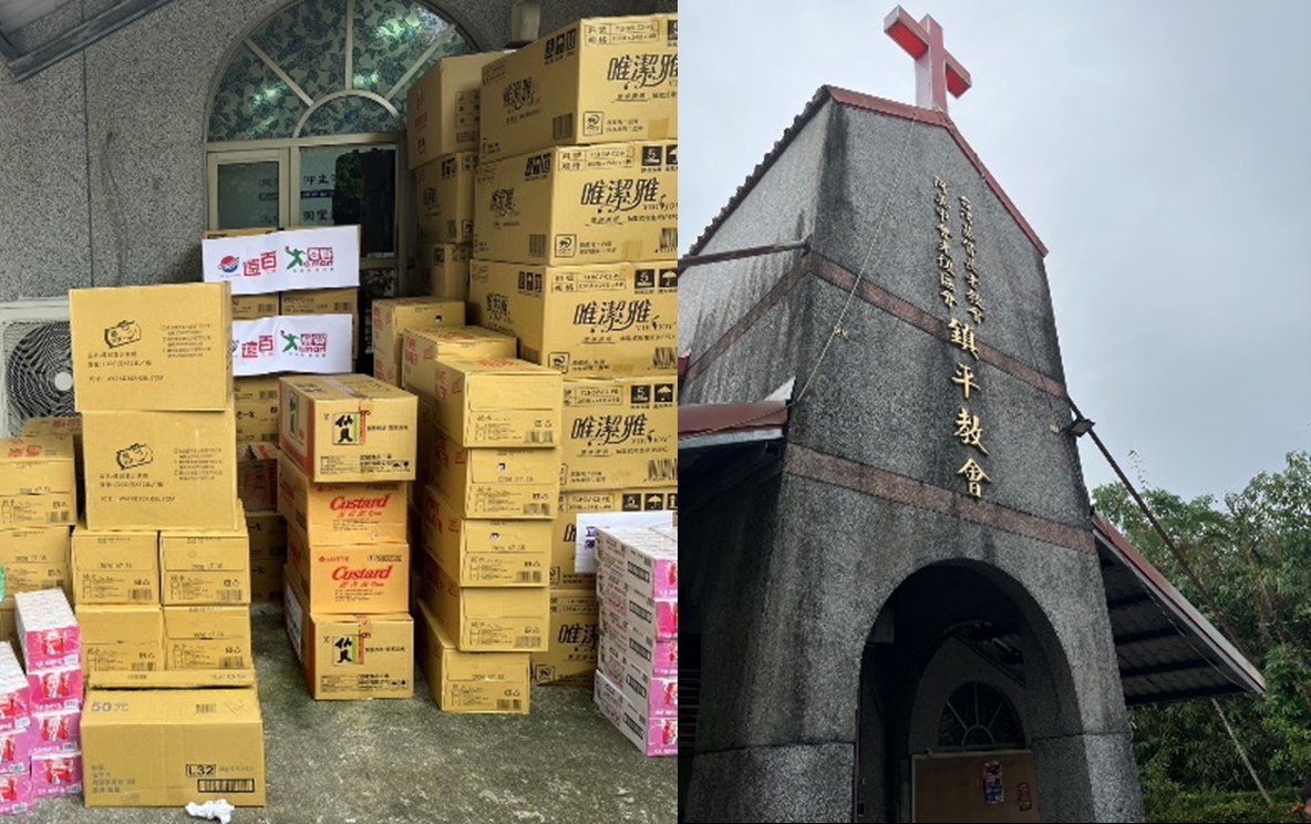 9月26日愛買花蓮店、遠東百貨花蓮店及民眾捐贈物資送至光復鄉鎮平教會