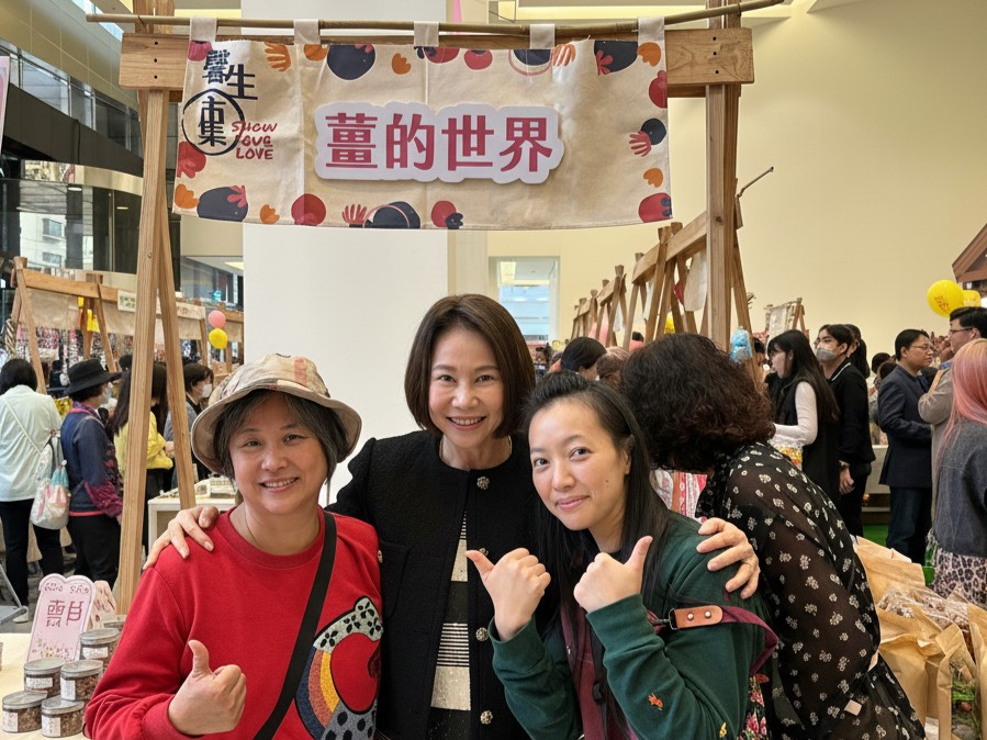 董事長 李靜芳真誠擁抱展現大愛與同理心,與社福夥伴們共同打造充滿溫度的交流平台。(圖 / 遠東巨城購物中心提供)