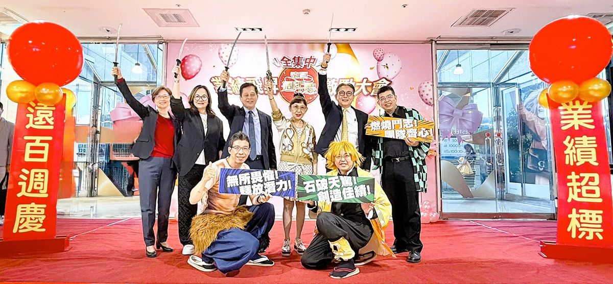 桃園遠百今(10/23)正式引爆週年慶熱潮!為凝聚團隊士氣、全力衝刺業績高峰特於開店前舉辦「全集中!業績飛升誓師大會」,全體同仁齊心迎戰年度最大檔期。大會以超人氣動畫為靈感,桃園店主管驚喜登場化身「貴殺隊」,以創意造型展現團隊熱情與決心。店長江天佐化身主角,兩位副店長也化身人氣角色登場,現場氣氛熱烈、掌聲不斷,展現桃園遠百的凝聚力與活力。江天佐表示,團隊將以最高的服務熱忱與專業態度,提供顧客最優質商品與最超值優惠,力拚週慶銷售佳績。(圖 / 遠東百貨提供)