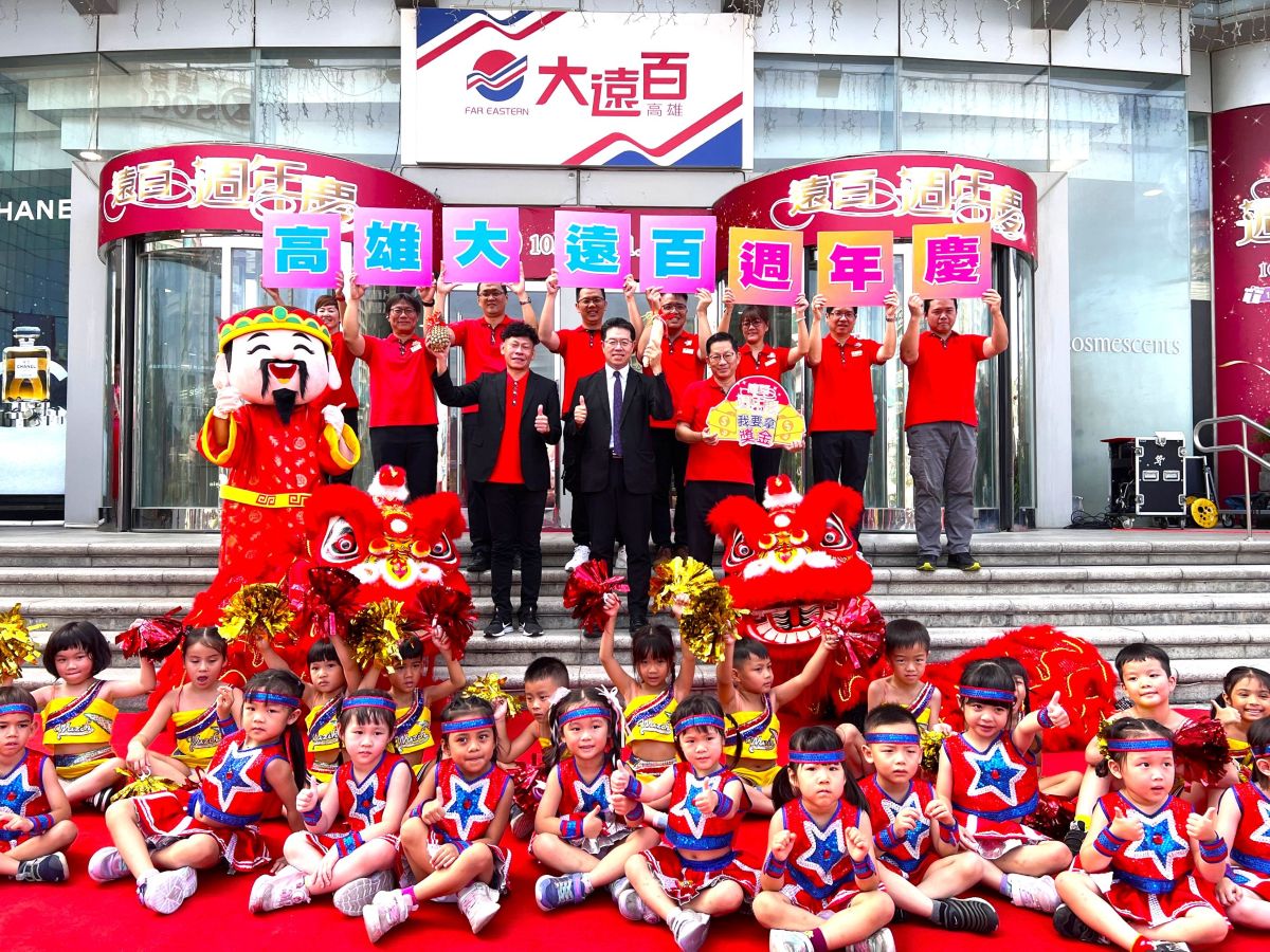高雄大遠百週年慶10月30日由店長白偉敏經理率領副店長陳建宏副理正式擊鼓啟動!(圖 / 遠東百貨提供)