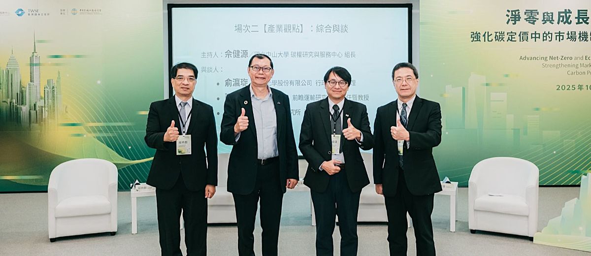 2025年10月1日【淨零與成長並行:強化碳定價中的市場機制】研討會,由臺灣碳權交易所、國立中山大學碳權研究與服務中心、臺灣證券交易所主辦,邀請企業共同探討碳定價制度設計與市場機制強化,促進減碳與經濟發展雙贏。東聯化學行政管理處俞瀛琁協理於當日活動中以化學產業觀點進行短講,內容摘錄如下:(短講內容係由東聯化學行政管理處俞瀛琁協理及總經理辦公室房軒經理聯合撰稿)