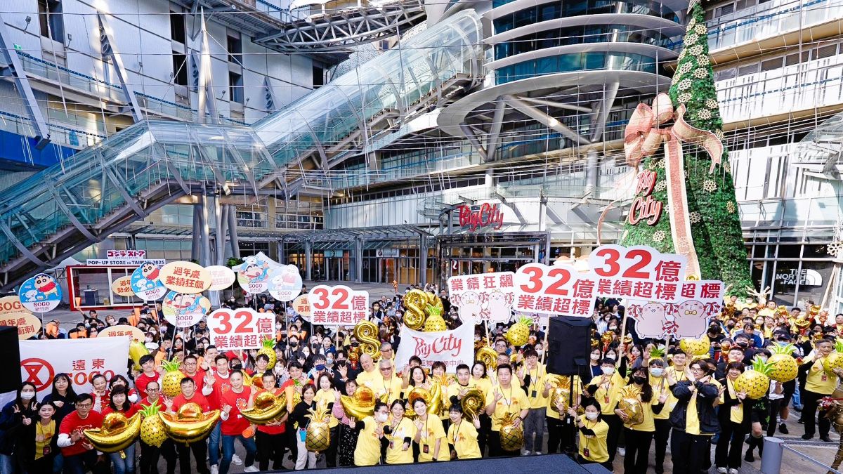 Big City遠東巨城購物中心迎來年度購物盛事,週年慶將於11月27日至12月8日隆重登場,今(25)日率先舉辦誓師大會,巨城一級主管帶領全體夥伴換上阿Mall T恤列隊集結,現場氣勢蓄滿、口號響徹,展現備戰決心與士氣。大會中,全體同仁齊心喊出今年週年慶目標「挑戰12天32億(含遠東SOGO百貨新竹店)」熱血口號,以最佳狀態迎接最熱鬧檔期。(圖 / Big City遠東巨城購物中心提供)