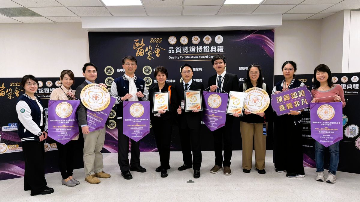 從門診守護到重症治療、從癌症照護到慢性病管理,亞東醫院在今年「2025年品質認證授證典禮」(11日)中再創佳績,一舉獲得創傷性腦損傷、腎臟病、頭頸癌、乳癌、糖尿病、腦中風等六大品質認證,彰顯跨科整合與智慧醫療的深厚實力。院長邱冠明表示,這些認證不僅是榮耀,更代表醫院持續深化跨科整合與堅持「病人至上」的理念獲得肯定。(圖 / 亞東醫院提供)