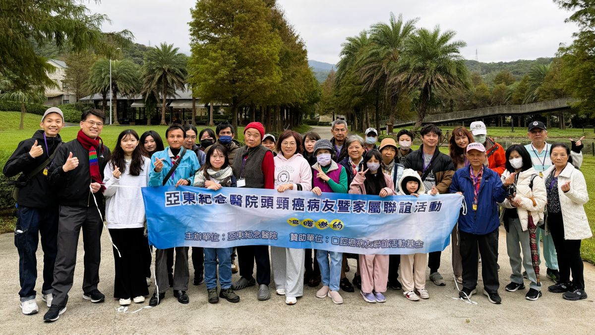 頭頸癌團隊以加快診斷、迅速啟動治療為目標,結合專業與關懷,舉辦「病友暨家屬聯誼活動」,透過踏青舒緩壓力,讓病人與家屬感受支持 (圖 / 亞東醫院提供)