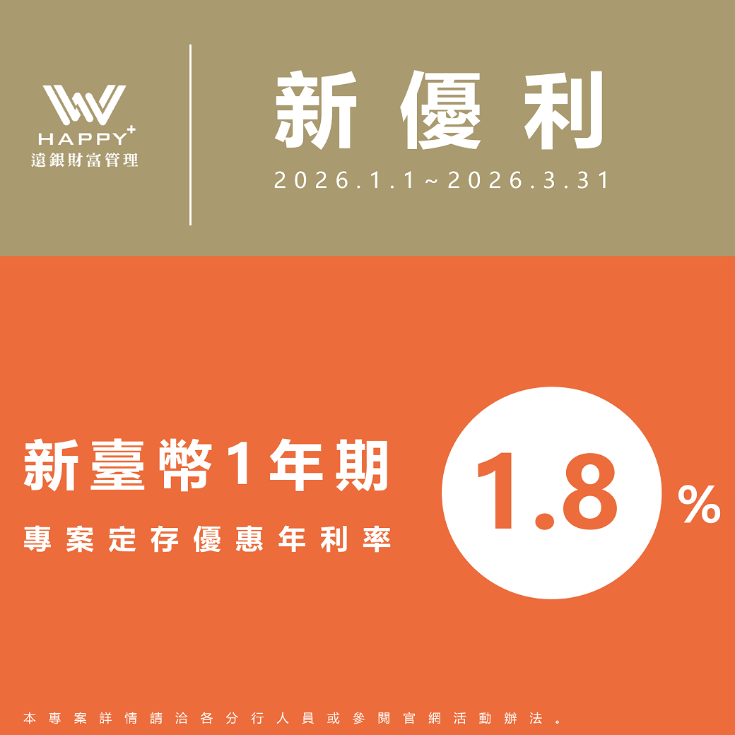 2026限量優惠 遠銀定存1.8%搭配活存1.4%打造雙重防護