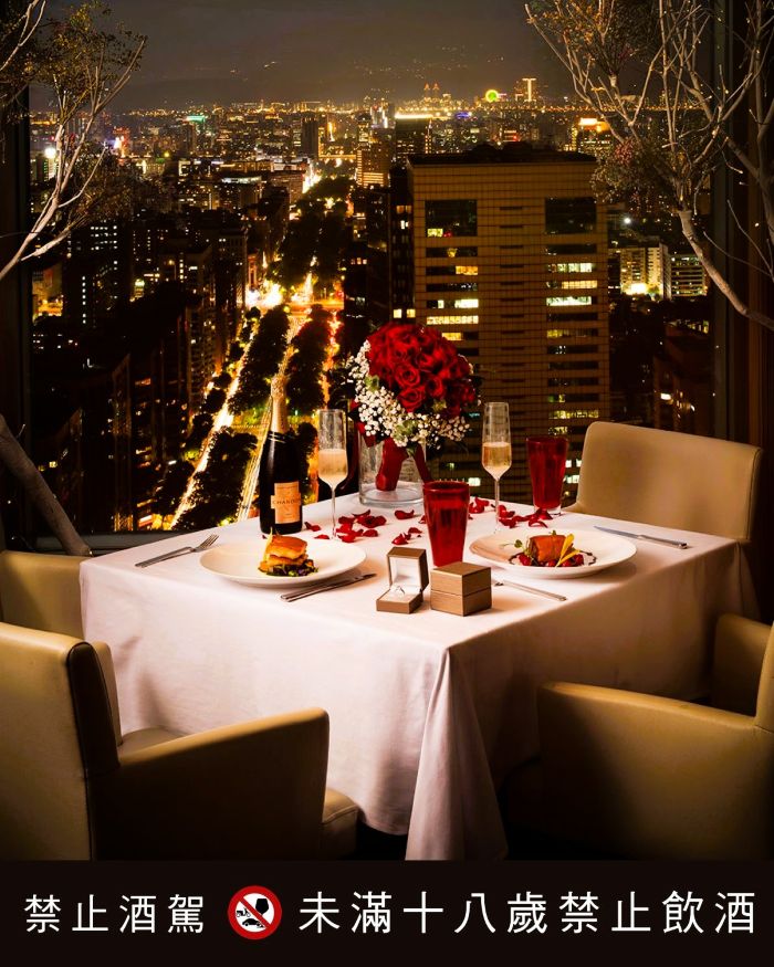 除了奢華饗宴,餐廳內座落於落地窗畔的「七號求婚桌」更是全場焦點。此專屬席位以擁抱敦南林蔭大道與城市天際線的絕美視角聞名,當璀璨如鑽的高空夜景映入眼簾,在靜謐優雅且具私密感的氣氛環繞下,自然營造出遠離都會喧囂的極致浪漫。服務團隊更針對此指標性位置提供驚喜策劃服務,無論是動線鋪陳或情境營造皆能精準掌握細節,協助戀人在絕美窗景見證下告白求婚,將心動瞬間轉化為終生銘記的永恆珍藏,在此譜寫專屬於兩人的愛情篇章。(圖/台北遠東香格里拉提供)