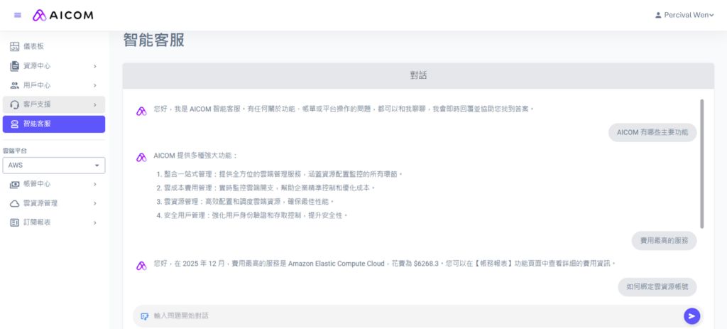 全新亮相的 AICOM® 智能客服 (圖 / 博弘雲端提供),以生成式 AI 為核心,能即時理解雲端帳務管理、權限配置、資源狀態與帳單分析等平台專業應用操作,帶來更精準、更具情境感的互動體驗。 AICOM® 智能客服的設計理念,是讓平台管理者或企業用戶無需繁瑣查找,即能快速取得資訊與引導操作,讓新用戶能迅速上手,同時協助企業組織大幅縮短帳務查找及功能操作時間,化為全天候的線上 AICOM® 雲端顧問,確保雲端管理效率與帳務支援不中斷。AICOM® 智能客服的導入,標誌著雲端治理服務從被動型工具全面升級為主動型智能助理,為企業帶來真正可依賴的 AI 雲端服務治理。