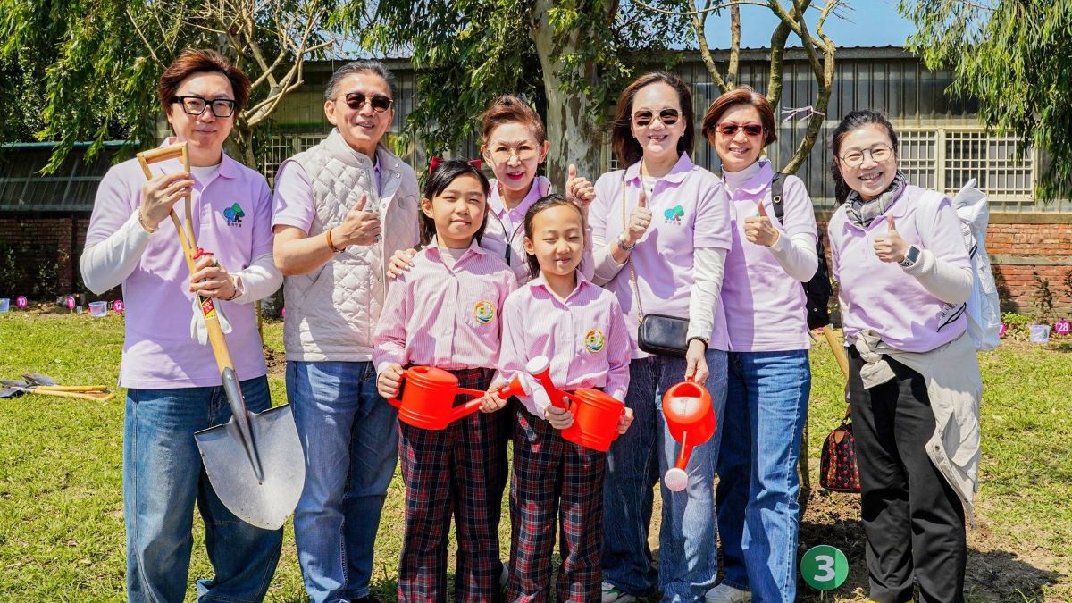 遠東百貨總經理徐雪芳帶領遠百經營團隊與新港國小學生於校園內共同種植樹苗並體驗澆水灌溉,小朋友們親手參與植樹過程,透過實際行動學習環境保護與永續理念。遠東百貨總經理徐雪芳率遠百同仁團隊與新港國小學生於植樹活動現場合影,共同見證遠東百貨ESG植樹行動邁入第三年,攜手為校園種下綠色希望。(圖 / 遠東百貨提供)