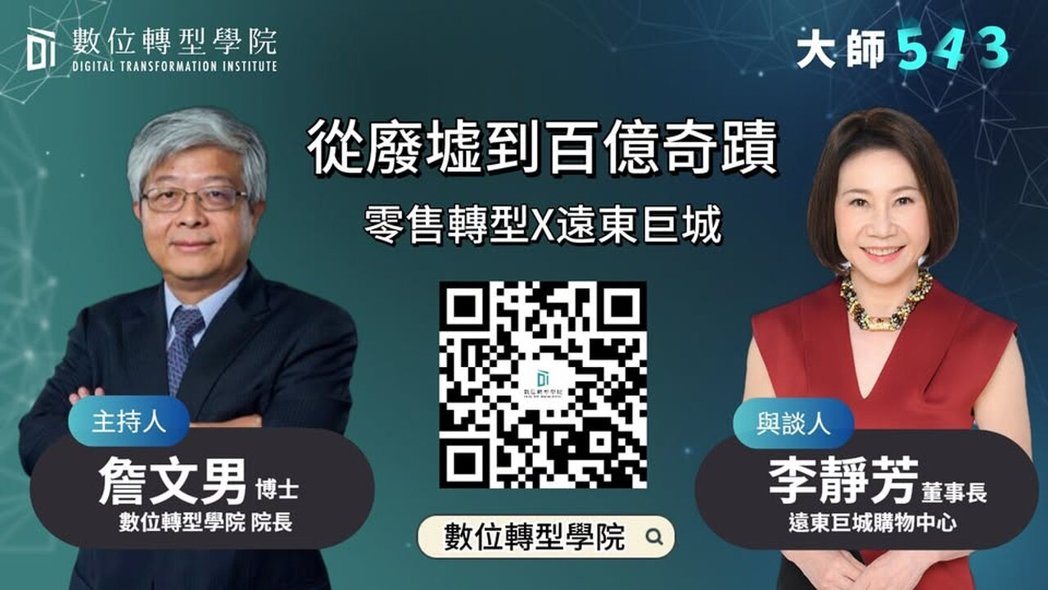 在AI與電商席捲全球的今天,實體零售是否還有未來?在《大師543》節目中,數位轉型學院院長詹文男,邀請遠東巨城購物中心董事長李靜芳,分享一段極具啟發性的「從廢墟到百億」的真實歷程。(圖 / 經濟日報報導)