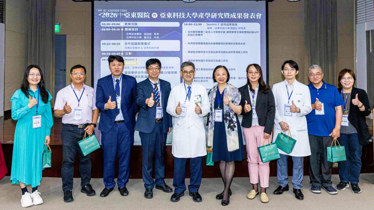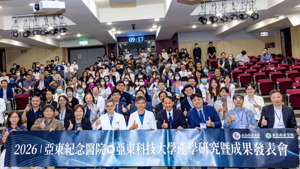 為展現醫療與科技的深度融合及邁向國際化的決心,亞東科技大學與亞東紀念醫院於2026年4月17日,假亞東紀念醫院14樓國際會議廳,盛大舉辦「2026亞東紀念醫院暨亞東科技大學產學研究暨成果發表會」。本次大會聚焦於「淨零碳排、AI智慧應用與國際化醫療」等時代關鍵議題,完美體現雙方強大的研發能量與遠東集團的跨界綜效。會場產官學研界貴賓雲集,包含亞東科技大學校友會林伯修會長、金屬工業研究發展中心服務創新發展處副處長胡昌明博士、亞太技術交易公司莊水榮總經理、友印國際有限公司執行長張杜薇、張盛名顧問、吳明燦醫師,以及博太生技舒翰鵬副總經理、鄭守晴顧問與安宏生醫林穎玟主任等人共襄盛舉,為跨域與跨國的醫療科技鏈結揭開新局。